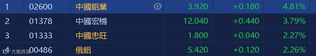 沪铝今日延续上涨行情,主力合约收报18320元/吨,创下10年以来新高。港股铝业股午后走高,其中中国铝业(02600)升4.81%,收市报3.92元。中国宏桥(01378)升超过3%。