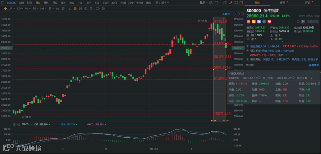 所以此次上调印花税税率绝对是昏招!股市的连续下跌就是最好的证明。截至周五收盘,恒生指数已经从最高31183点下跌2203点,跌幅6.77%。到此,港股版“半夜鸡叫”发生。