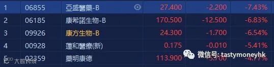 韩国持续出现民众接种流感疫苗后死亡事件,引发关注。韩国总理丁世均23日呼吁,对相关死亡病例进行彻底调查。生物医药股大跌,亚盛医药(06855.HK)跌7.43%,收市报27.4元。康希诺(06185.HK)及康方生物(09926.HK)跌幅超6%。