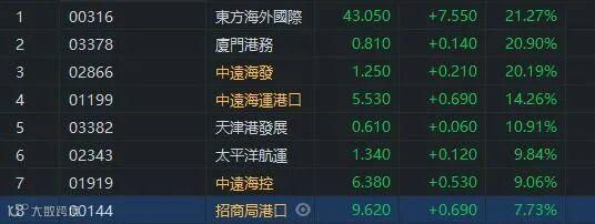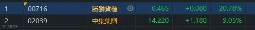 近半年亚州大部分国家疫情相对稳定,进出口回升,集装箱的需求和价格大幅上涨,出现「一柜难求」的情况。这情况已经持续几个月,港口运输、航运股造好。胜狮货柜(00716.HK)升20.78%,收市报0.465元。中集集团(02039.HK)升9.05%,收市报14.22元。东方海外(00316.HK)、厦门港务(03378.HK)及中远海发(02866.HK)升幅都超过20%。