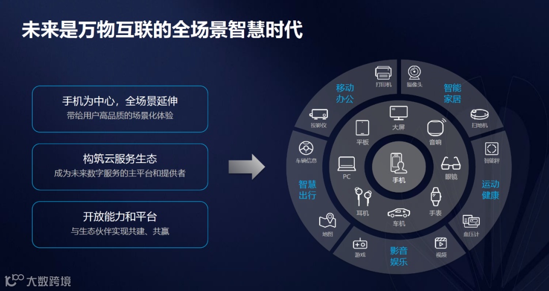 华为走的路就是发展 IoT 物联网科技,除了1的手机外,8大智能终端包括有 PC 计算机、平板、电视、音响、头戴式装置、手表、车用仪器、耳机等等。这些装置能够在 N 个场景,包括智能家居、运动、娱乐、流动办公、智慧出行上全面应用。最近,华为进军电动车市场,车联网也是与中软国际合作的。