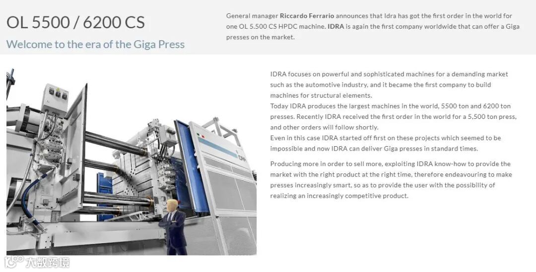 马斯克口中的「世界最大车身压铸机」是特斯拉新世代产线的重要兵器,早先已进驻加州。此压铸机就是由力劲旗下意大利精密机械制造商 IDRA 称为 Giga Press 的生产设备,尽管不是专为特斯拉打造,但许多迹象都显示特斯拉就是其主要客户。