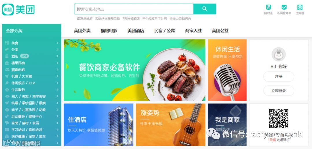 整个平台目的是为消费者发现最值得信赖的商家,享受超低折扣的服务,同时为商家找到最合适的消费者。业务可分为三大部份,包括「餐饮外卖」、「酒店及旅游」和「新业务及其他。