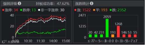30日,指数早盘整体震荡上行,午后集体回落,沪指带头翻绿失守3400点。早盘大涨的金融板块午后集体回落,顺周期、可降解塑料等活跃,白酒、油气概念领跌,下跌个股午后走多,两市个股由上午的涨多跌少,涨跌比2:1,收盘时变成跌多涨少;涨幅大于7%的个股55只,跌幅大于7%的个股20只;涨停个股只有34只,跌停个股13只。两市合计成交9507亿元,两市成交量明显增加。截至收盘,上证指数跌0.49%,报3391.76点,深证成指跌0.15%,报13670.11点,创业板指涨0.49%,报2631.89点。