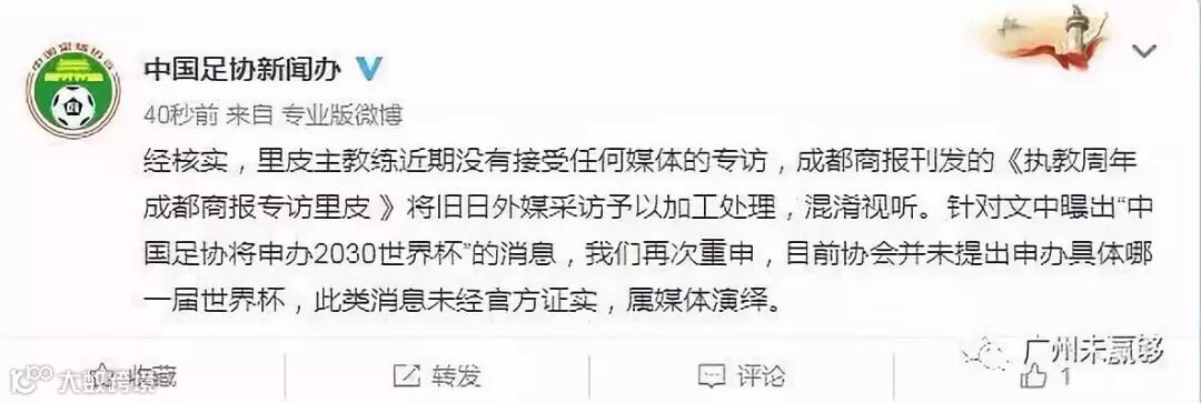 他此话一出,立即惹起广大球迷热议,但是中国足协马上出来“辟谣”: