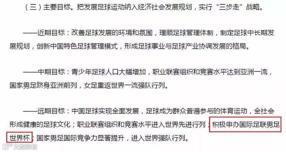 2017年3月,《关于中国足球改革发展总体方案》中明确提出:举办世界杯是中国足球中远期的发展战略目标。