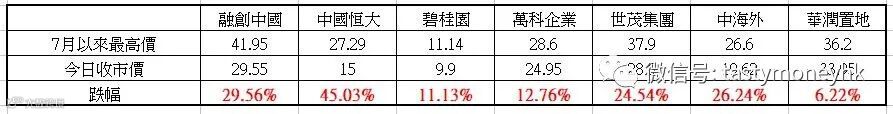 我们由下图可以看到几只内房股由7月高位回调不少: