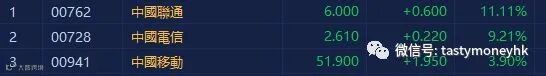 工信部网站发布文件,三大运营商均获批eSIM全国应用许可,eSIM或迎来大规模发展机遇。当前eSIM技术已被应用于可穿戴设备,下一步将在车联网、工业物联网等电子产品中得到广泛应用。电信股普涨,中国联通(00762.HK)升11.11%,收市报6元。中国电信(00728.HK)升9.21%,收市报2.61元。中国移动(00941.HK)升3.9%,收市报51.9元。