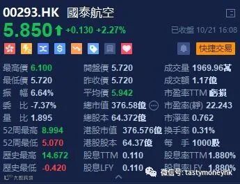 国泰航空(00293.HK)公布了这一重组计划,公告称,公司的全资附属公司港龙航空将停止运营,由今天开始生效。将整体削减约8500个职位,约占国泰航空3.5万个职位的24%;未来数周将裁减约5300名驻港员工,另有约600名非驻港员工可能受到影响。由于近月实行冻结招聘及关闭若干海外基地等节流措施,其余2600个职位现已悬空。由于疫情负累,旅客暴跌98%。国泰公布裁员后,股价造好一度升至6.1元,其他升幅收窄,收市升2.27%,报5.85元。