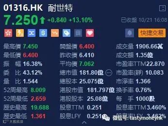 宝尊电商(09991.HK)主营品牌电商代运营业务,阿里巴巴参与了宝尊电商A轮融资,后续成为宝尊最大外部股东。自然也是「双十一」受惠股,宝尊电商创了香港上市以前的新高,升5.78%,收市报95.2元。