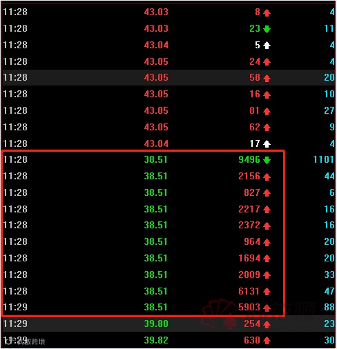 从跌停时刻的挂单来看,出现了连续4笔顶格万手大单。以跌停价38.51元计算,4笔委托单的市值达1.54亿元。