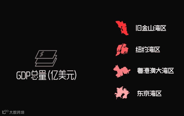目前,粤港澳大湾区经济总量已超过旧金山湾区,接近纽约湾区水平,进出口贸易额约是东京湾区的3倍以上,区域港口集装箱吞吐量约是世界三大湾区总和的4.5倍。