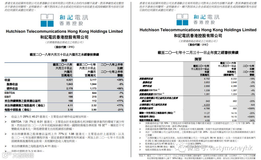 在2018中报, 和电香港说: