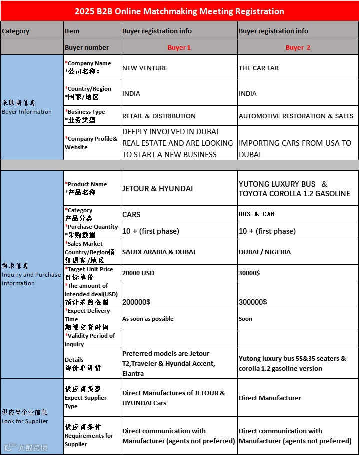 本场活动的两位印度采购商需购买整车,各自想购买的品牌如下:
