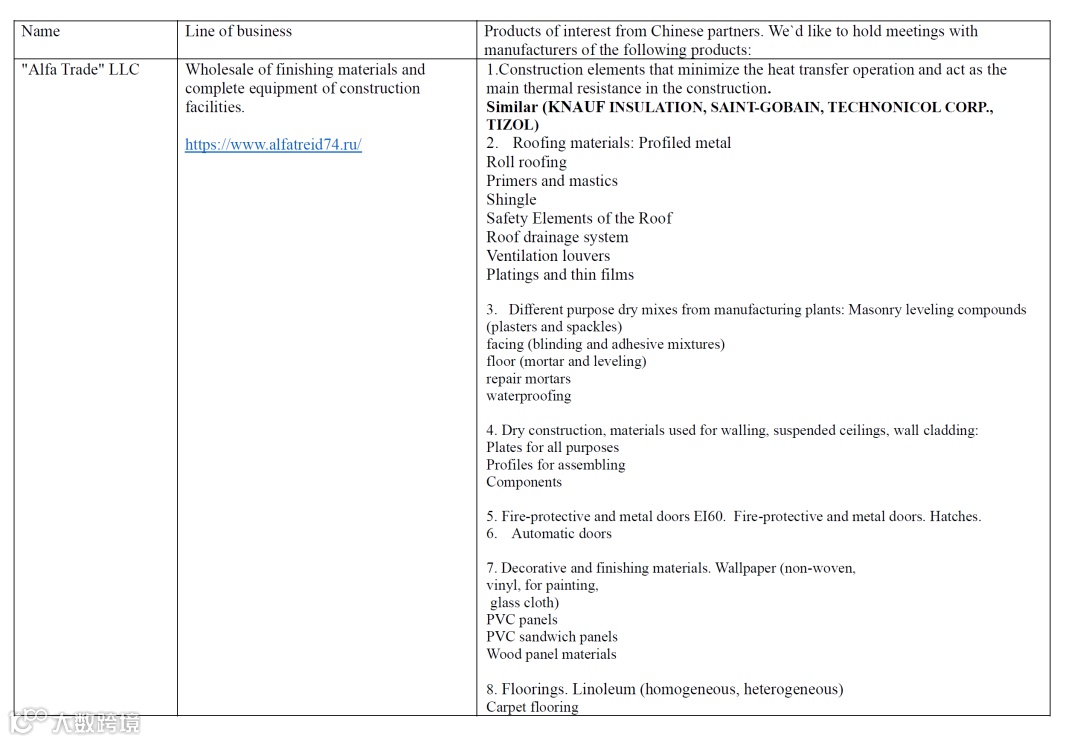 南乌拉尔州工商会拟于4月15日至4月18日率代表团参加广交会。其会员企业阿尔法贸易公司计划采购建材相关产品,希望能在广交会一期期间拜访