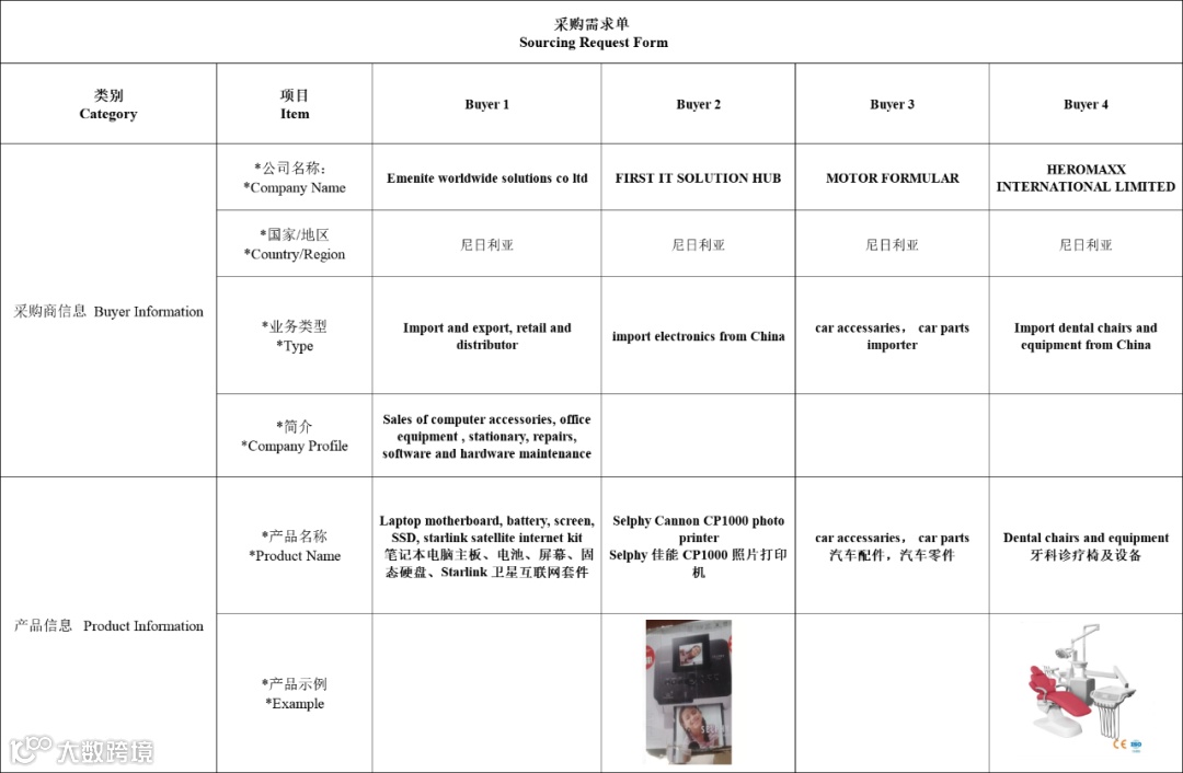 本次非洲国家专场的采购需求如下: