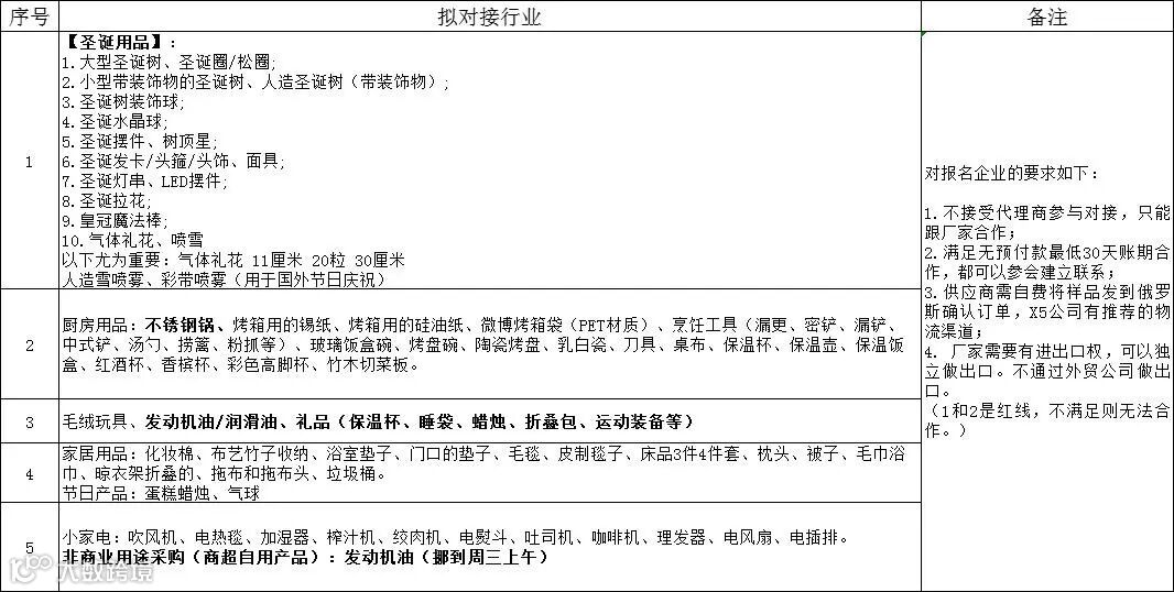 第132届广交会将于2022年10月15日线上开幕,各项筹备工作正有序推进。为提升供采对接活动的专业性和精准性,突出广交会促出口、抢订单功能,助力企业开拓国际市场,提升参展成效,外贸中心将于10月17日至10月21日举办“贸易之桥”——第132届广交会全球贸易推广跨国头部企业供采对接周活动,北京时间每日上午举办俄罗斯X5集团线上采购专场,意向采购需求附后,欢迎广大参展商积极报名。