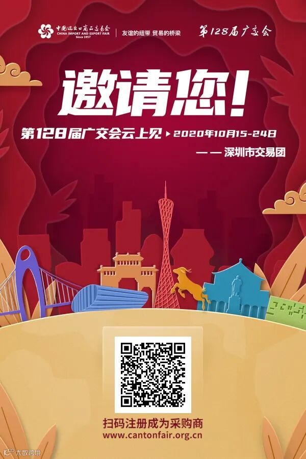 第128届广交会将于10月15日-24日在网上举办,为境内采购商提供线上对接平台,一站式接洽全球优质参展企业。在此,诚邀广大境内采购企业参加第128届广交会,体验中国历史最悠久的贸易盛会与强大互联网技术的创新融合,共享全球商机,实现贸易高效对接。