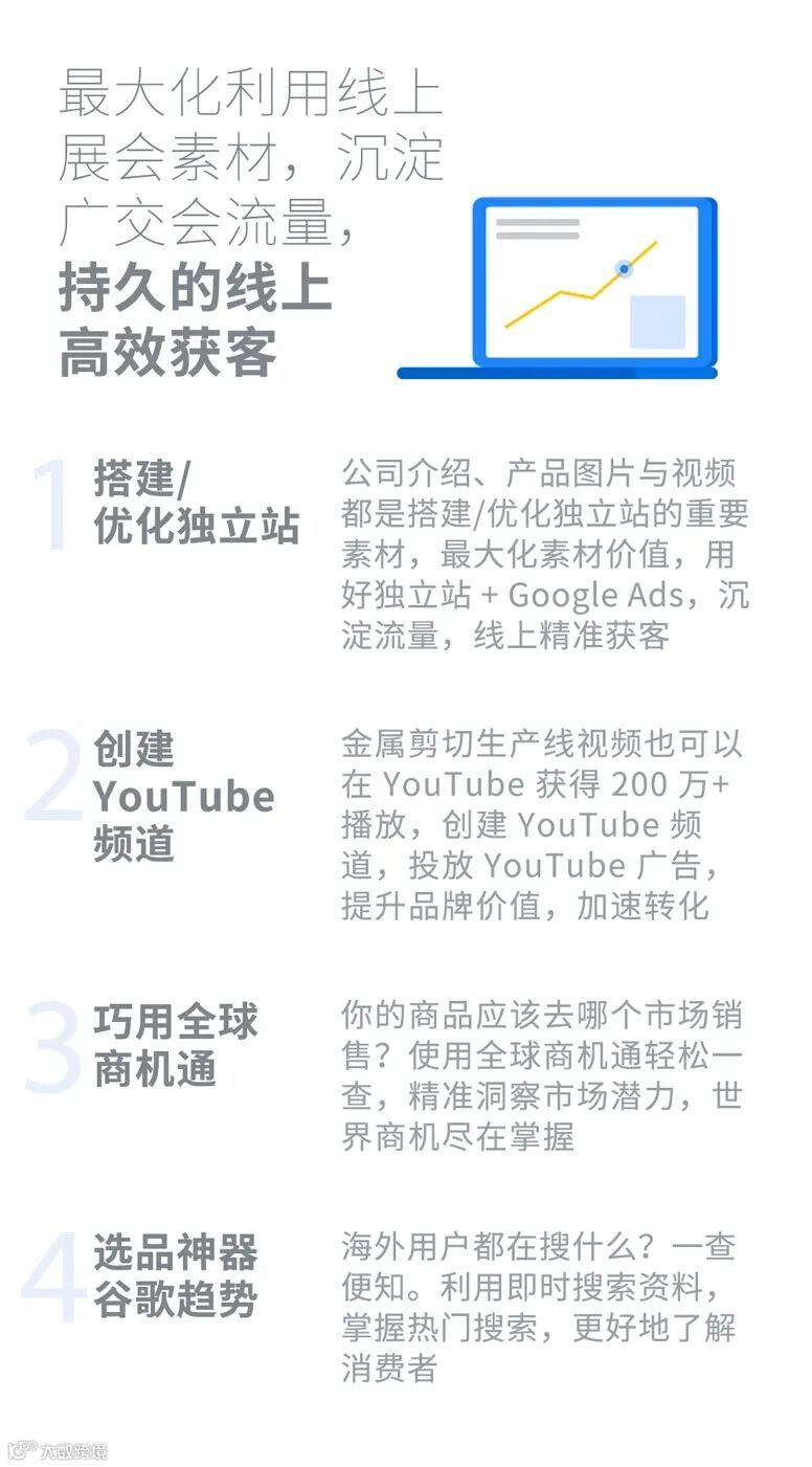 谷歌助力备展网上广交会,5月15日(周五)14:00为参展企业提供直播培训。直播培训结束后,可以通过链接回看。