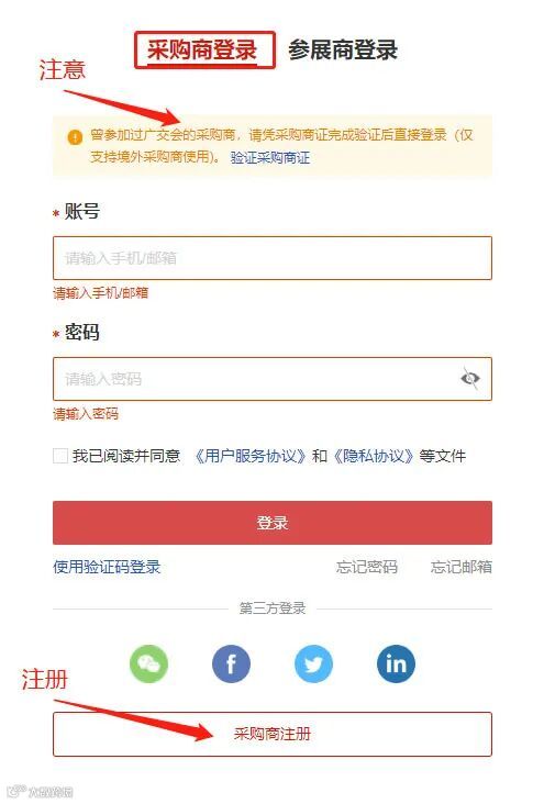 参展企业也可将此网址链接发送给客户进行采购商注册及登录。