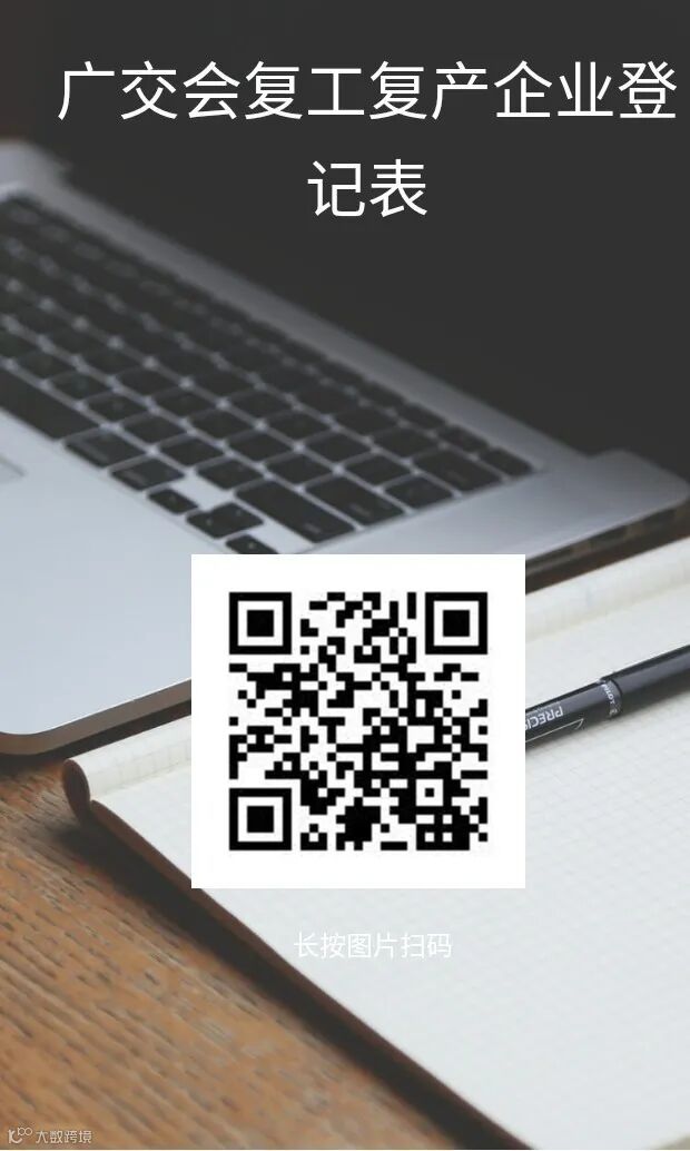 为及时掌握企业复工复产情况、企业经营所受影响及在复工复产后面临的困难,市商务局外贸处邀请深圳交易团品牌展位企业填写《广交会复工复产企业登记表》,请贵司于2月21日-24日期间,扫描下方二维码,如实填报。