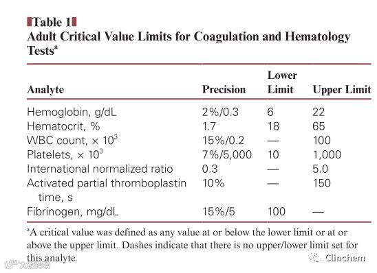 近期,刊登在Am J Clin Pathol上的一篇来自Weill Cornell Medical College的文章对此进行了探讨。该研究探讨的危急值主要是血常规和凝血,医院设立的危急值标准如下: