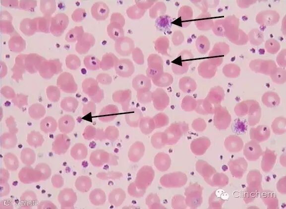 2.外周血片(×1000,瑞-吉染色)中箭头所指的现象是( )