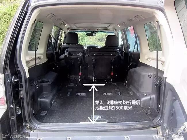 帕杰罗拥有第3排座椅。不用的时候,折叠起来藏于地板下面,头枕亦有专门的空间放置。第3排座椅的最大宽度为1340毫米,距前排距离235毫米,这个数字与普拉多基本持平,宽度大于普拉多的1120毫米。
