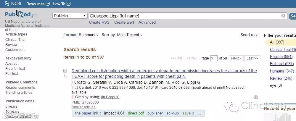 首先需要说明下,Diagnosis是一本并不出名的杂志,甚至还没有被PubMed和SCI收录。但是它的编委阵容还是比较强大的,比如其主编就是大名鼎鼎的Mario Plebani,另外,Giuseppe Lippi也是该杂志的Associate editor。如果不知道Giuseppe Lippi是谁,大致可以看看下面这张图: