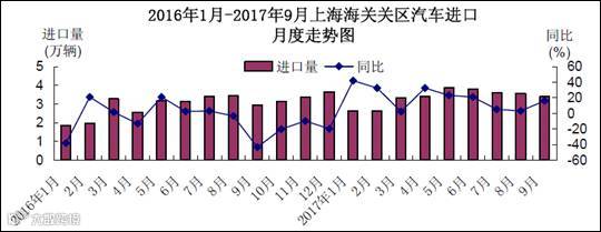 2016-2017年9月上海关区汽车进口月度走势图