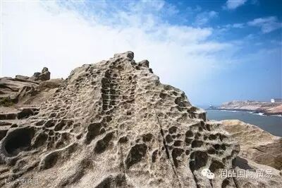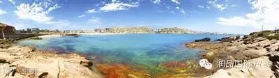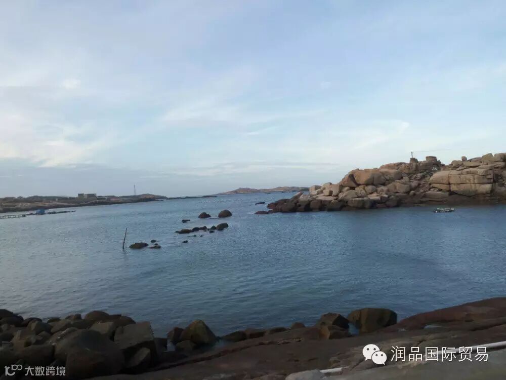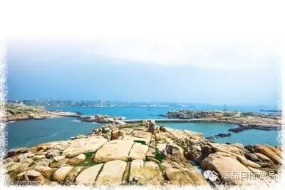 ↑从猴研岛上眺望,天空一碧如洗,形态各异的石头遍布海岛