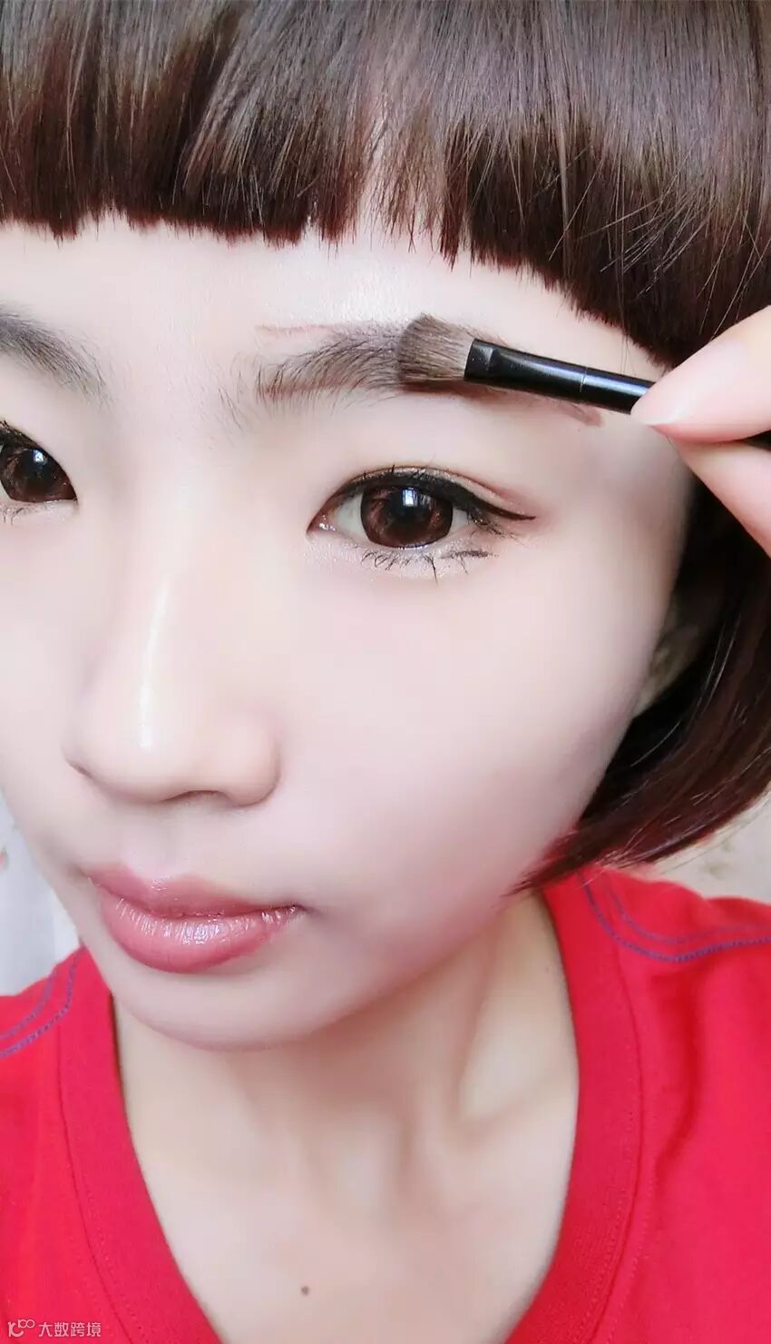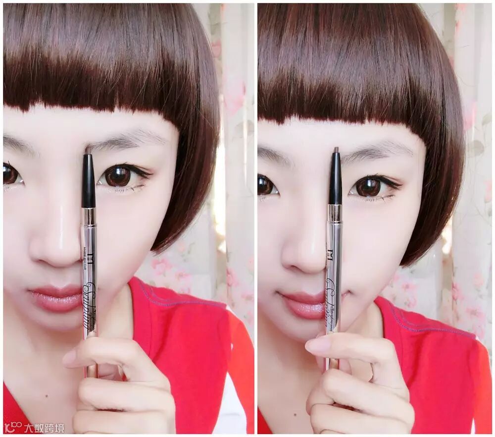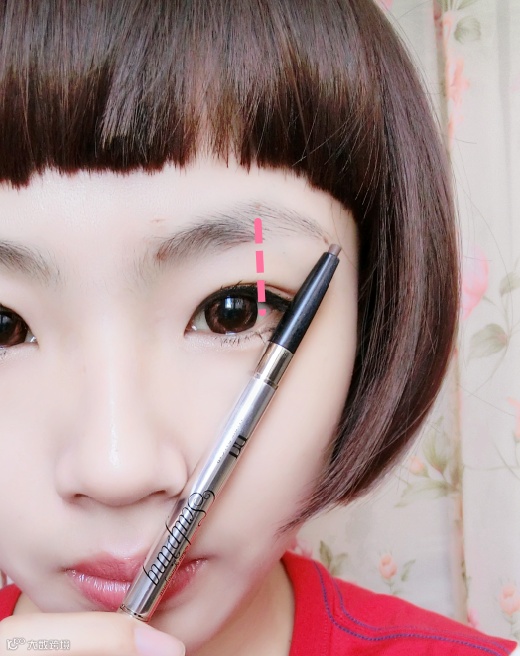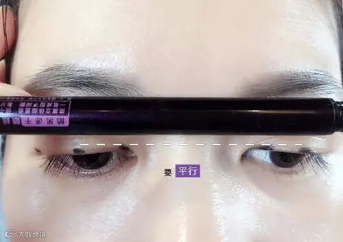 眉头、眼角以及鼻翼三点应该一条直线上,用眉笔轻轻在眉毛处点出两个点(两点距离为眉毛宽度),这样就可以轻松找到眉头的位置。