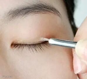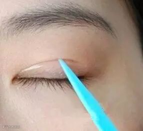 Step 1:根据眼睛的长度及想要褶皱的宽度修剪双眼皮,如果你的双眼皮尾部比较垂,就把后端稍微减宽一些,双眼皮前段比较窄,就把前段剪得宽一些。