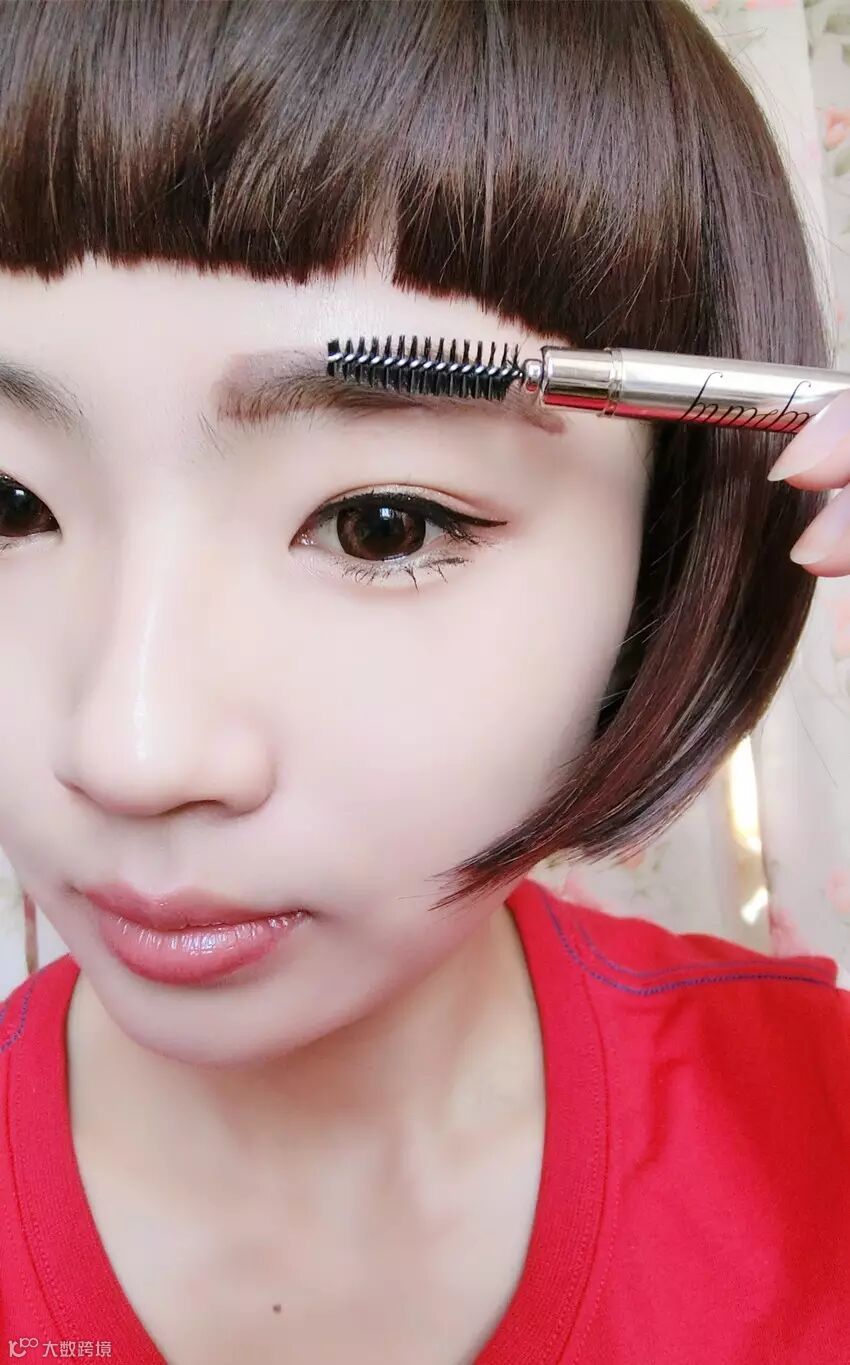 用眉笔另一端的螺旋刷对画好的眉毛进行梳理使其顺向并且扫除余粉使其更加自然立体。