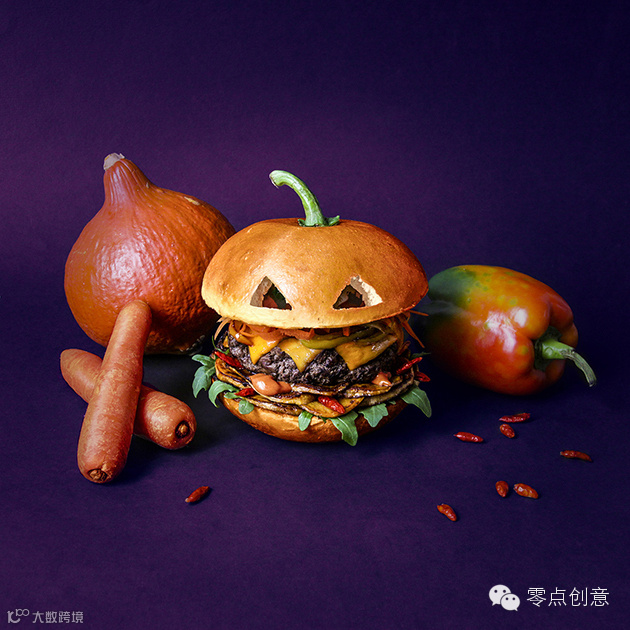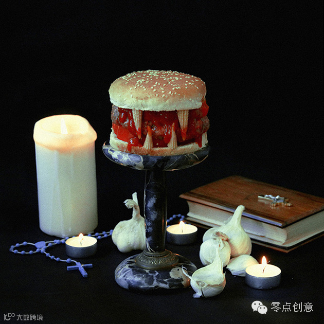 金黄色的玉蜀黍代替吸血鬼的尖牙,双层的汉堡涂满浓稠的番茄酱,可怕的汉堡就此显灵!