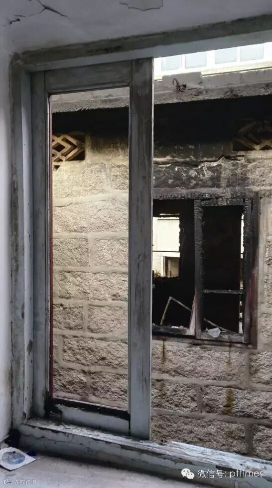 ↑陈国英家的窗户玻璃被烧坏掉落