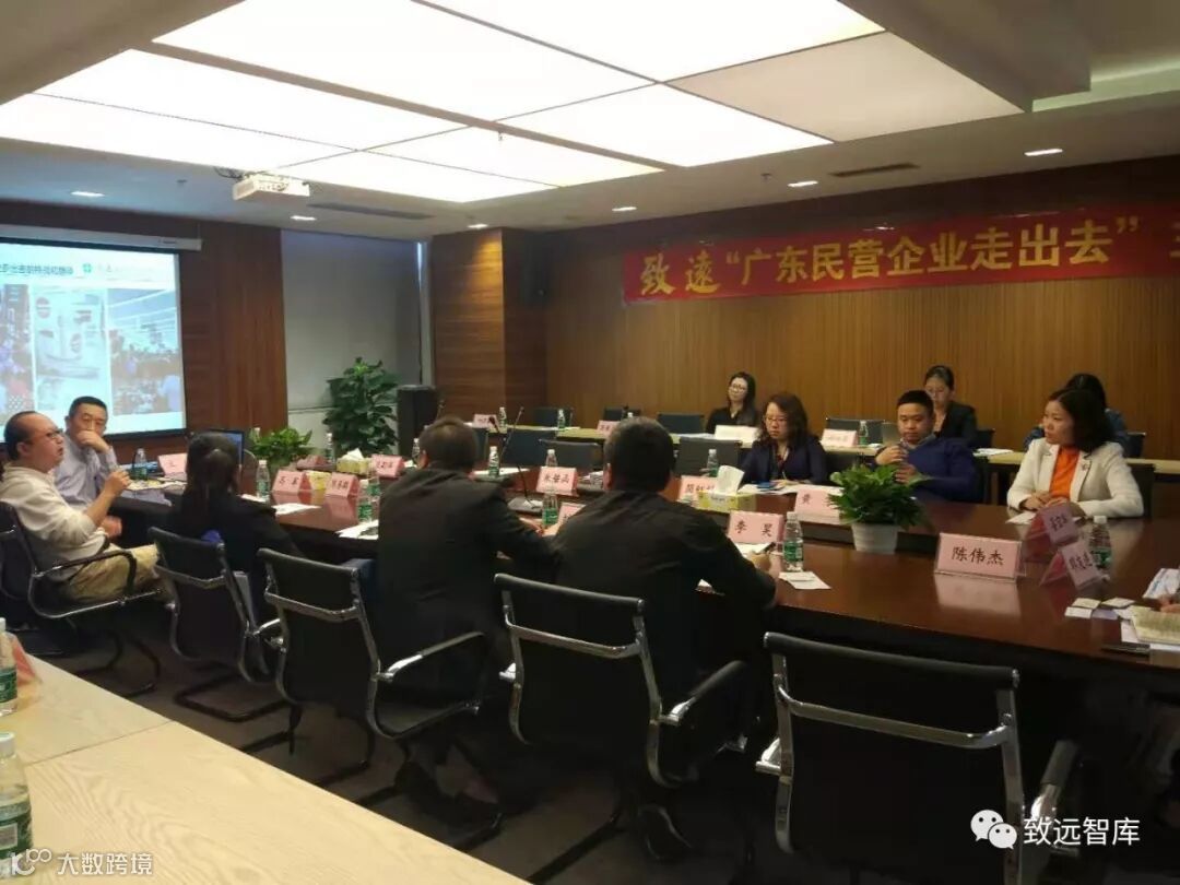 3月14日下午,致远智库(CIEC)在广州召开民营企业走出去的专题座谈会,就当前国际政治、科技、经济形势和“一带一路”背景下的民营企业走出去问题进行了全面的讨论。致远智库高级顾问刘戈理先生、致远智库华南区域秘书长张艳女士,以及来自广东各个行业和专业协会的负责人,包括广东省知识产权研究会常务副秘书长张雅连女士,广东省医药企业管理协会副会长兼秘书长项中先生和王莉萍副秘书长,广东省校企与校校合作促进会郭爱东秘书长和朱碧函副秘书长、广东省电子信息行业协会副秘书长陈伟杰先生、广州市木兰女企业家协会常务副会长张巧灵女士等数十人参加了会议。