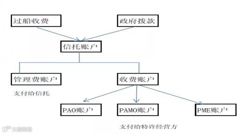 该项目付款资金来源分为两部分:过船收入+政府拨款。在正式进入运维期前,特许经营方申请设立信托,为项目成立专门信托账户。其操作结构如下图所示。