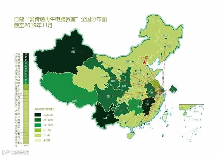此项公益-爱传递•再生电脑教室,以“教育扶贫”,”环保“,“循环经济”为宗旨,以性能良好的再生电脑帮助乡村学校建设电脑教室;无法再生的电子设备则送交专业环保处置工厂予以资源化环保处置。