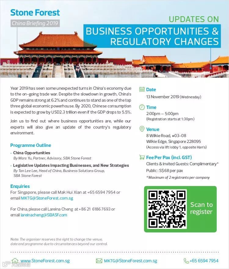 Save the date! 6 more days to go to our annual China Briefing. Get the latest updates on China's policies and the new opportunities for growth. Scan the QR code below to reserve a seat.
