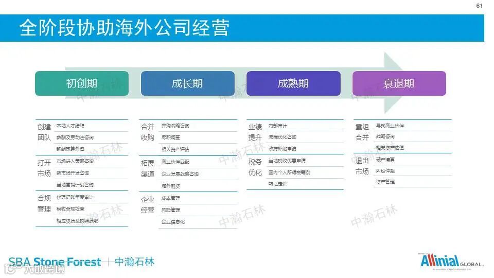 我们的理念是助力企业全球化发展,为中国企业拓展海外业务,也为进入中国市场的外商提供全方位一站式无忧解决方案,提供企业设立、会计、审计、税务合规、人事薪酬、CFO服务及商业咨询等服务,满足当地合规要求,为企业公司的高效运作提供坚强的后盾。
