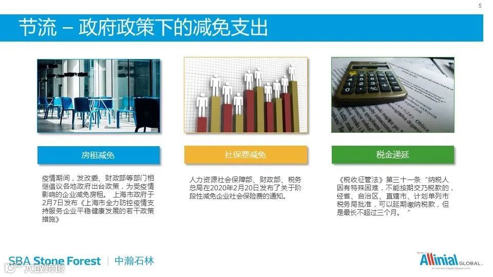 房租减免:企业应重新审核梳理供应商合同和付款条件。如果现金流将受到严重影响而无法支付,及时与供应商探讨,在不触犯与供应商的合同的前提下,是否可以给予适当延期。上海市政府发布,中小企业承租本市国有企业的经营性房产从事生产经营活动的,先免收2月、3月两个月租金。