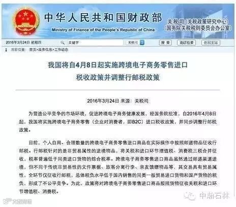2016年4月8日起,我国将实施跨境电子商务零售(企业对消费者B2C)进口税收政策,并同步调整行邮税政策。这个消息在朋友圈里一石激起千层浪。