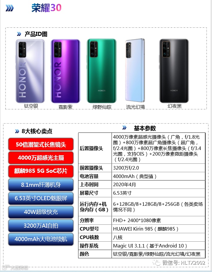 4、荣耀V30 8+128 原价3099元 特价2999元