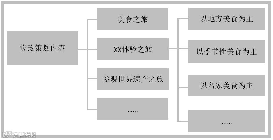 我们就可以针对这类顾客去开展问卷等形式的调查,根据调查的结果去判断销售额下滑的原因。倘若我们得到的原因不在出发日期、目的地和价格等方面,而是在于我们的旅行产品没有让消费者一锤定音的特色,那就要针对“修改策划内容”这一点来进一步思考具体对策了。