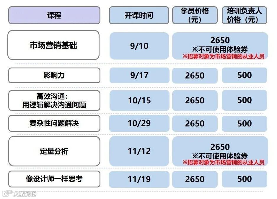 ・普通学员 :2650元/人/天(含税)