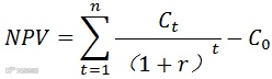 以财务领域最基本的概念NPV(Net Present Value:净现值)为例。它能反映出现金流、现值与风险。问题是,它的计算公式中有求和符号∑。