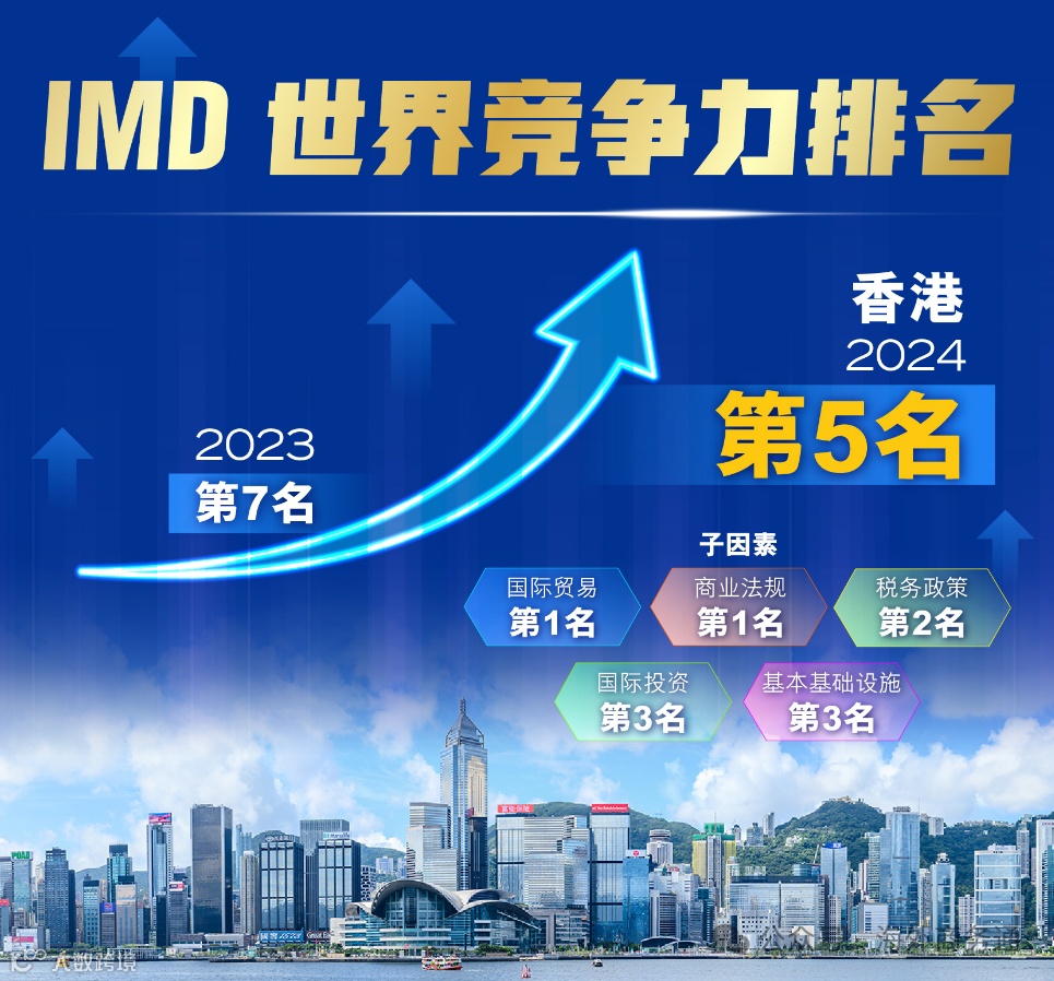 瑞士洛桑国际管理发展学院(IMD)最新发布的《2024年世界竞争力年报》中,香港以其卓越表现,排名大幅上升2位,成功跻身全球第五名,这一成绩再次印证了香港作为全球最具竞争力经济体之一的地位。