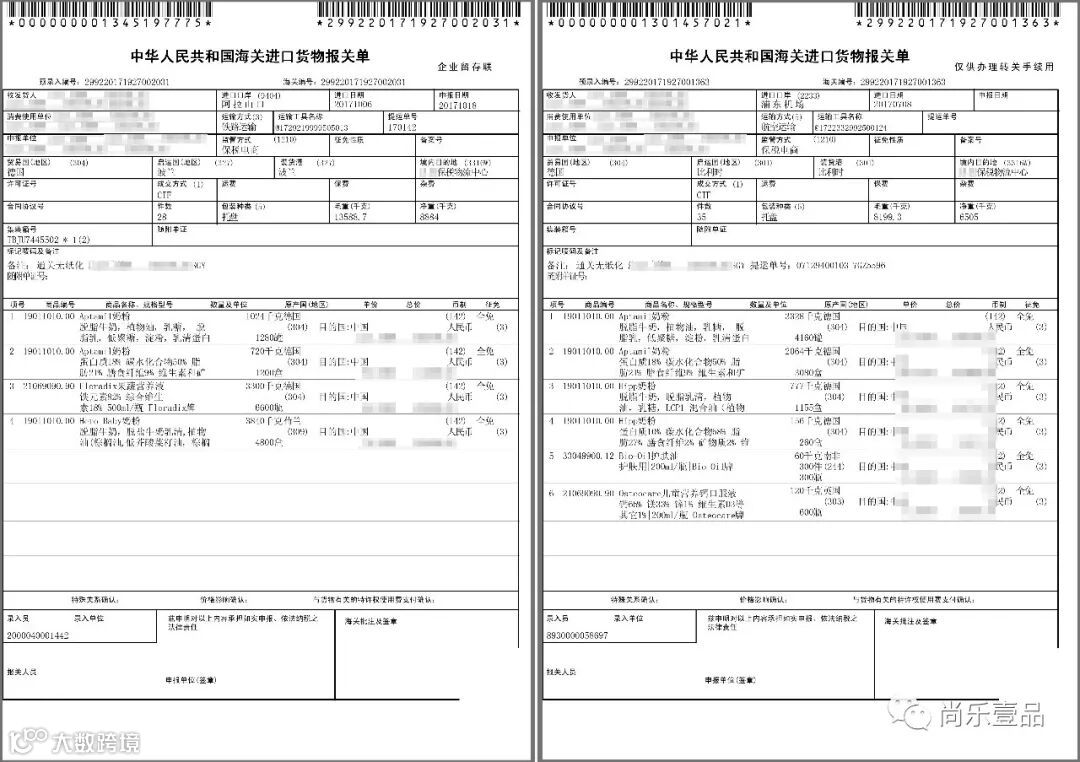 这是我们的商品进口报关单▼