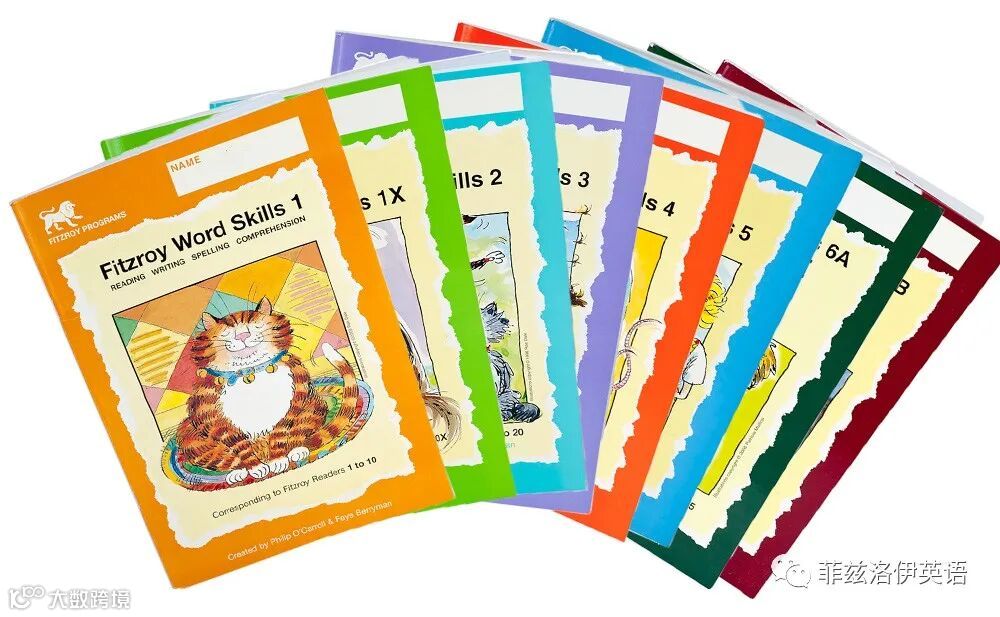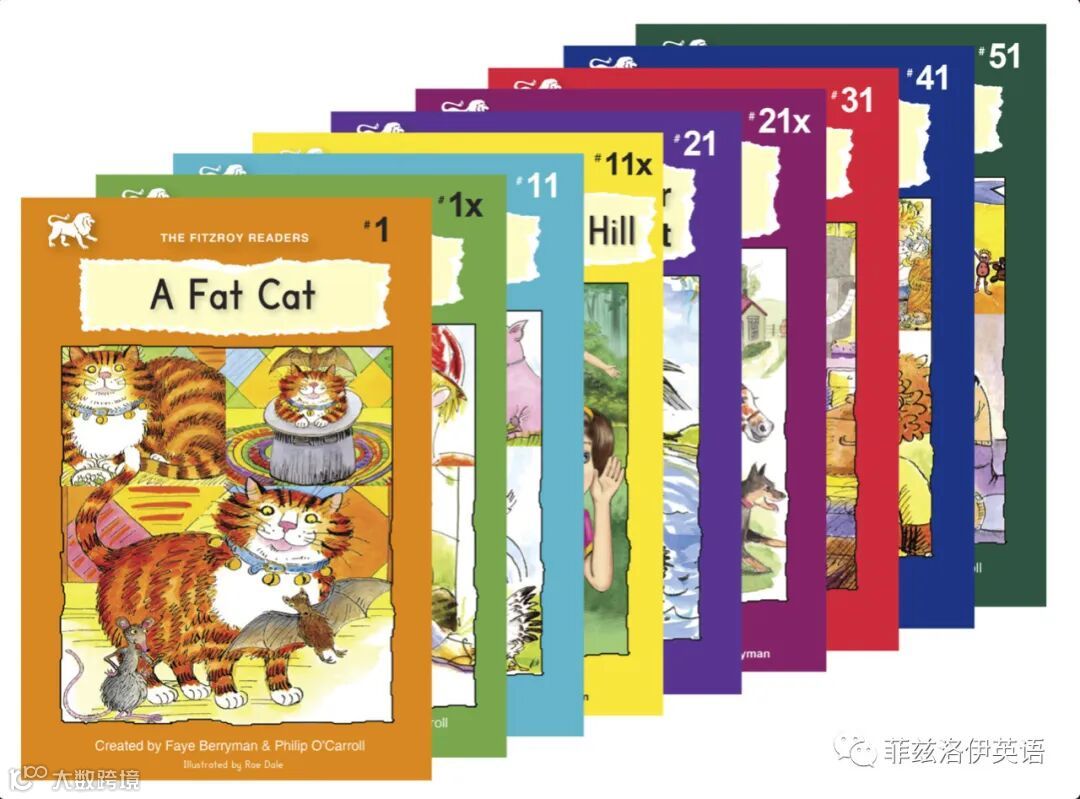 女士们、先生们,这些就是菲兹洛伊读本。这里有90本小故事,从最最简单的英语起步,一步一个脚印,直到最复杂的英语,每次我们只引入一个新的知识点,逐步诠释单词是如何被拼写的。